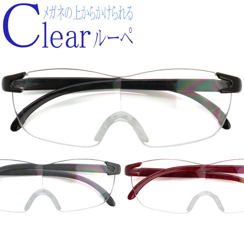 ルーペ メガネ ≪1.6倍率≫クリアルーペ 拡大鏡 (ブラック)[送料無料・全額返金保証]ルーペ 眼鏡 メガネの上から掛けられるルーペ