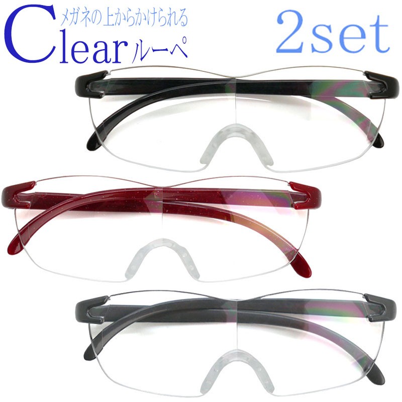 【セットでお得!】ルーペ メガネ2個セット ≪1.6倍率≫クリアルーペ 拡大鏡 [全額返金保証]ルーペ 眼鏡 メガネの上から掛けられる ルーペ