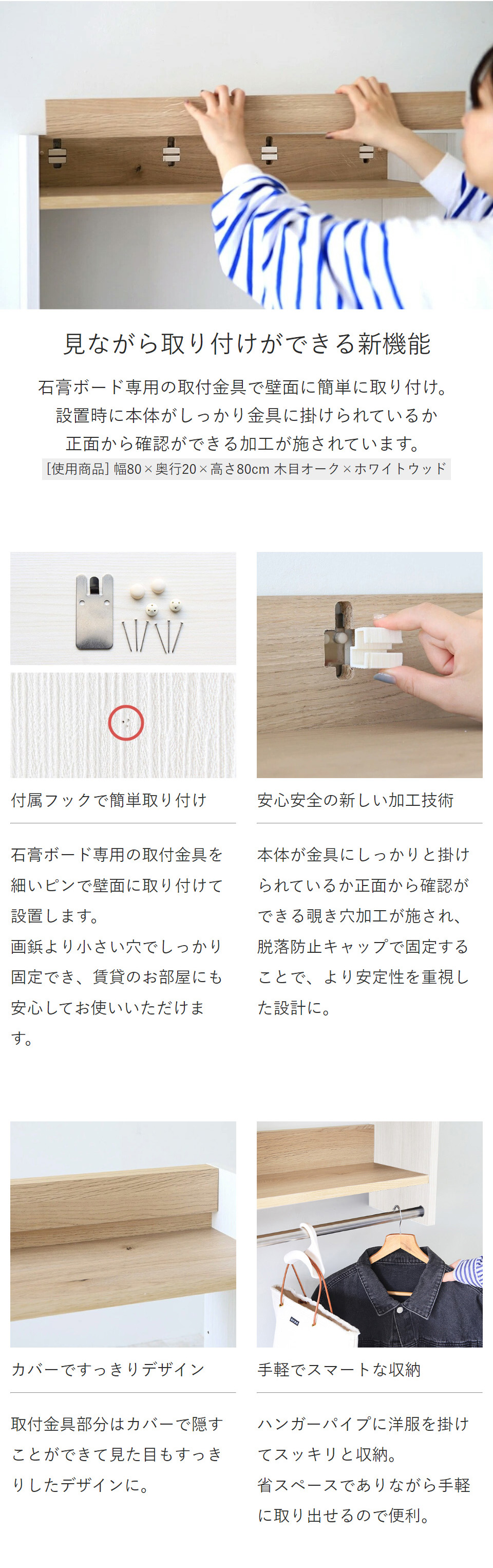 日本製/完成品/壁掛け用フック3個付属(石膏ボード壁専用)