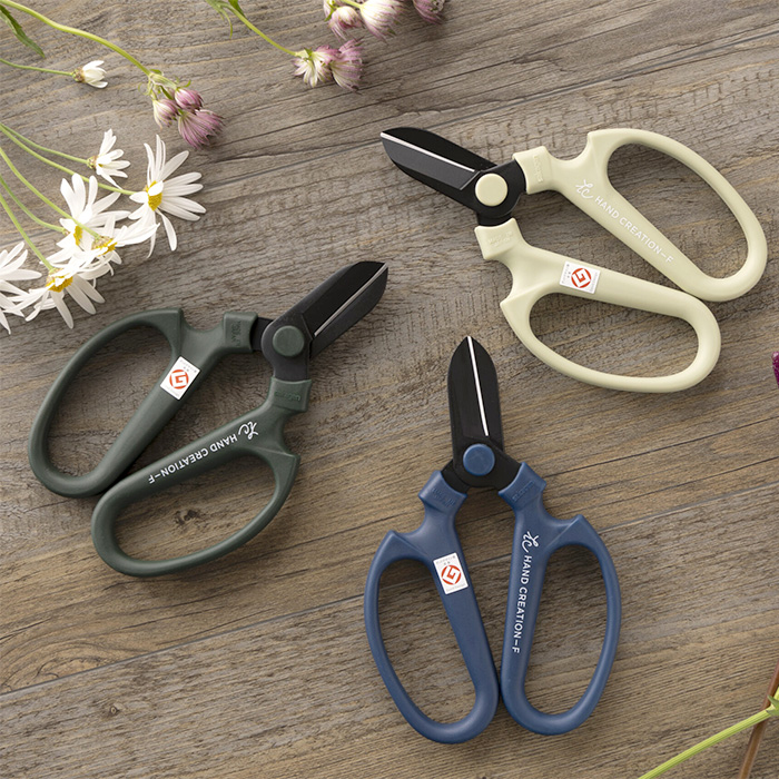 坂源 ハンドクリエーション F170 黒刃 坂源は1903年(明治36年)創業、新潟県三条市の花鋏メーカーです。 グッドデザイン賞を受賞したデザイン性の高い生花・園芸用ハサミ「ハンドクリエーション」。 切れ味が良く、軽くて持ちやすい機能性・デザイン性を両立し、ハンドルの末端まで鉄を使用しているため、丈夫な造りになっている生花・園芸用ハサミです。 「黒刃タイプ」は刃部に黒フッ素樹脂加工をしてあるため、汚れが目立たなくお手入れが簡単になっております。 また、白フッ素樹脂加工と比べカーボンを配合してあるため耐摩耗性が向上し、長く使える製品になっております。 ●美しく軽い ●使いやすく錆びにくい黒色フッ素樹脂コーティング ●丈夫(ハンドルの末端まで鉄を使用) ●刃先ケース付属(端材を使用しているため、デザインや色は時期により異なります) |