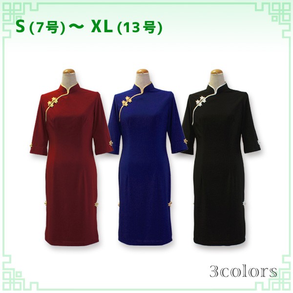 無地チャイナドレス 六分袖 ひざ丈 / チャイナ服 旗袍 民族衣装 二胡衣装 チャイナワンピース