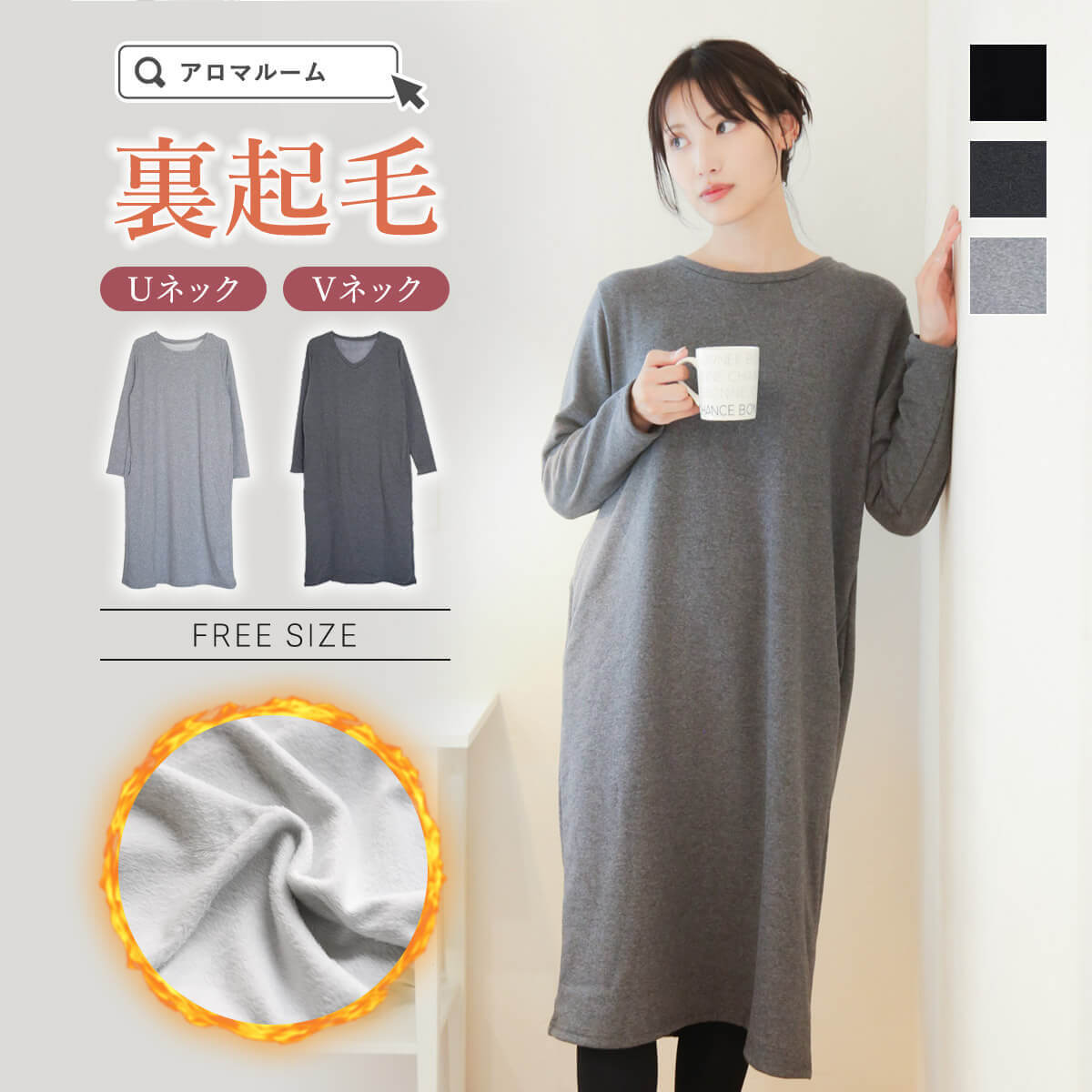 ルームウェア レディース ワンピース ルームワンピース 冬 裏起毛 無地 長袖 暖かい 大人 秋冬 ロング丈 〜11/15まで