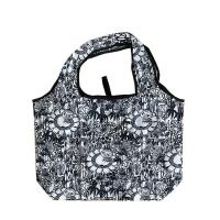 黒色をベースに落ち着いた花柄模様のエコバッグ