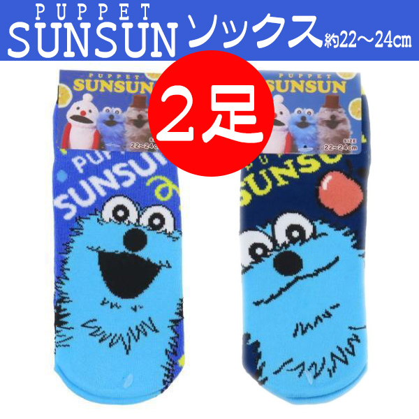 スンスン グッズ 靴下 ソックス パペットスンスン ショートソックス 22〜24cm 2足セット フェイス アップ