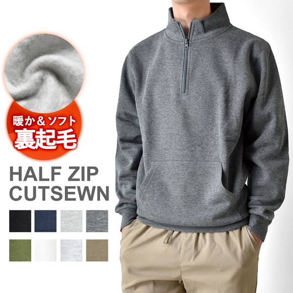 暖かな裏起毛ハーフジップカットソー。着た瞬間から暖かい裏起毛素材を使用。伸縮性があるので窮屈感はありません。スタンドカラー、カンガルーポケット付き。ルームウェアからタウンユースまで幅広く活躍するアイテムです。※こちらの商品は1点までのご注文の場合、ゆうパケットで発送させて頂きます。お届け日時はご指定頂けません。複数点購入・代引決済のご注文は宅配便での発送となります。