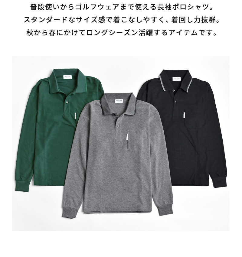 FIRSTDOWN thebasic 長袖 ポロシャツ メンズ ストレッチ カノコ 衿ライン 爆買 送料無料 通販YC