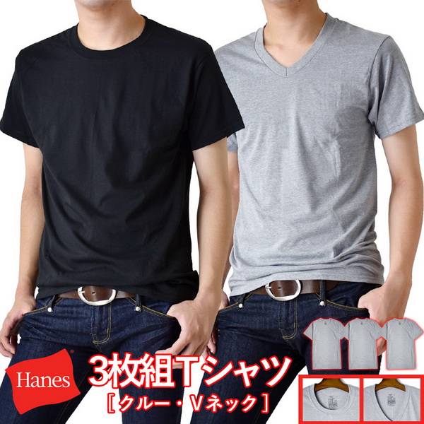 半袖Tシャツ 3枚組 3枚セット HANES ヘインズ ストレッチ 無地 クルーネック Vネック メンズ 爆買 送料無料 通販YC
