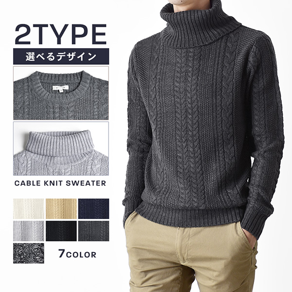 ニットセーター ハイネック タートルネック クルーネック 秋冬 セーター メンズ ケーブル編み 防寒 爆買 送料無料 通販YC