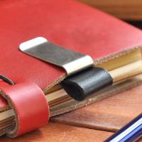 金属製のクリップに、ペンやメガネをセットできる本革のホルダーを組み合わせたクリップ。使うほど味が出てきます。