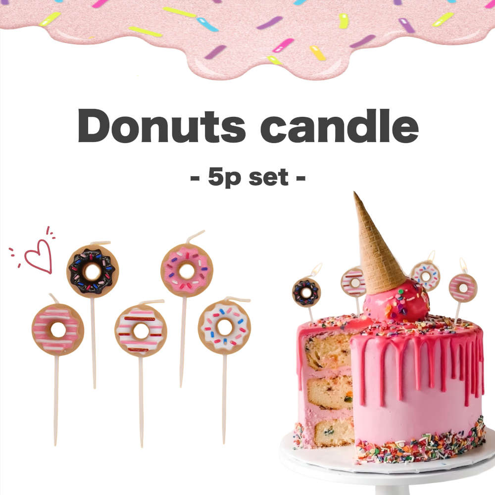 思わず食べちゃいそう!? キュートなドーナツ型のケーキキャンドル。デザイン違いの5個セット♪ 韓国 誕生日 ろうそく おしゃれ かわいい パーティー ドーナッツ