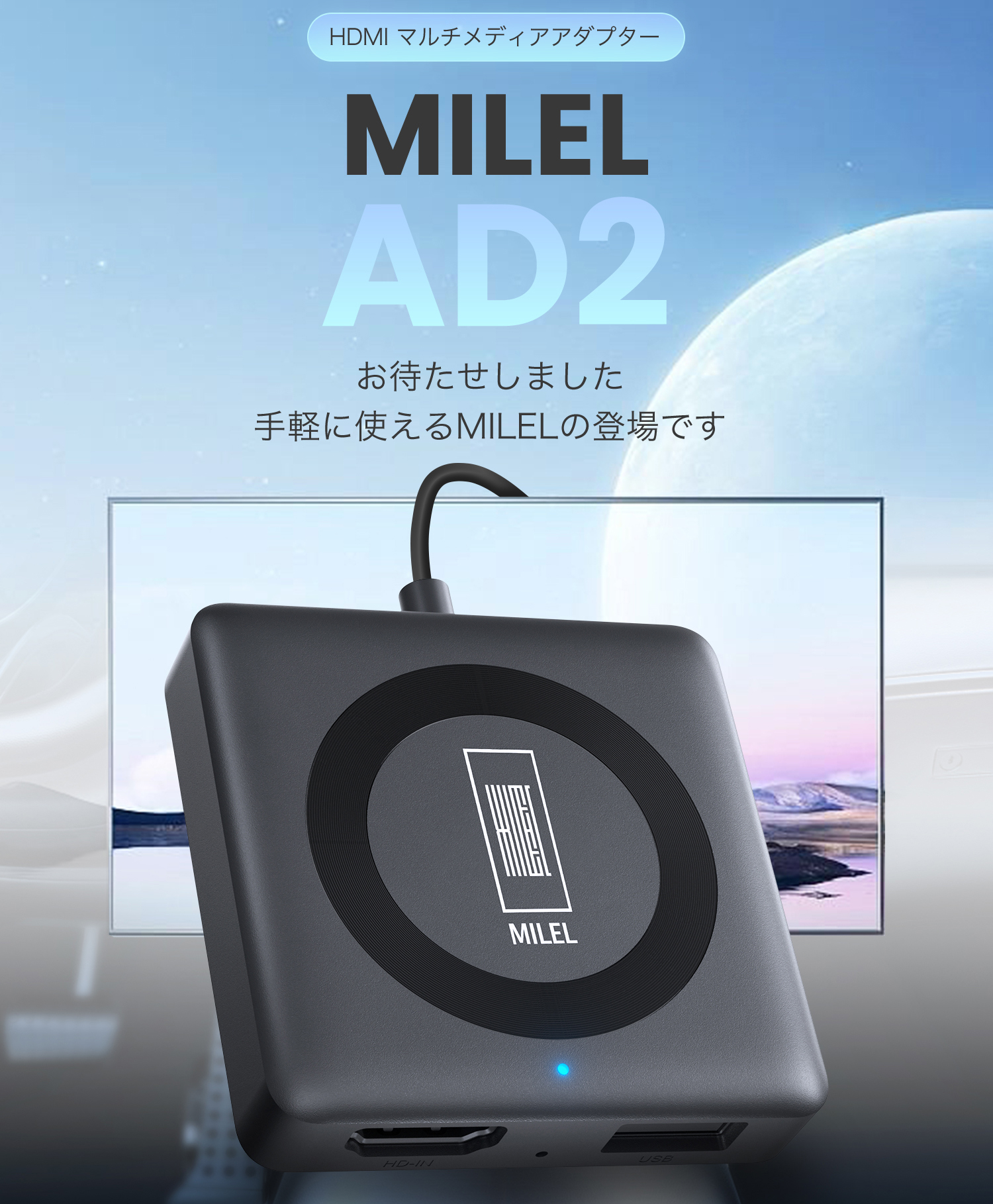 MILEL AD2 ミレル Car TV Mate Proカーテレビメイト HDMI出力のTV stick/DVDなど接続可能 ワイヤレスAppleCarPlay iPhone対応可能 【技適取得済み品】
