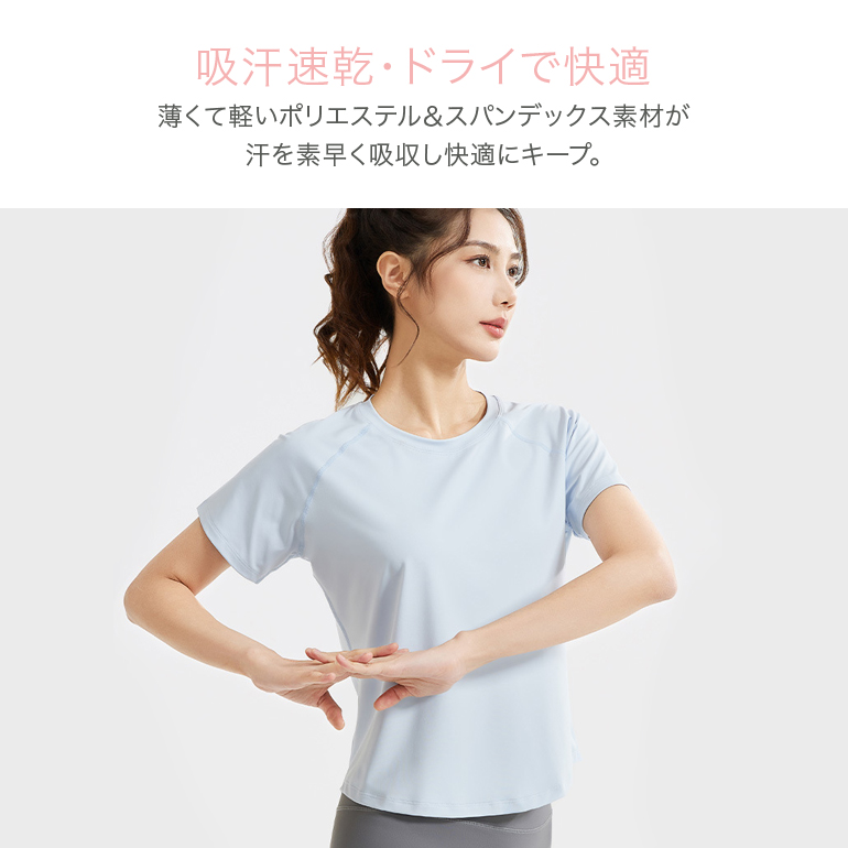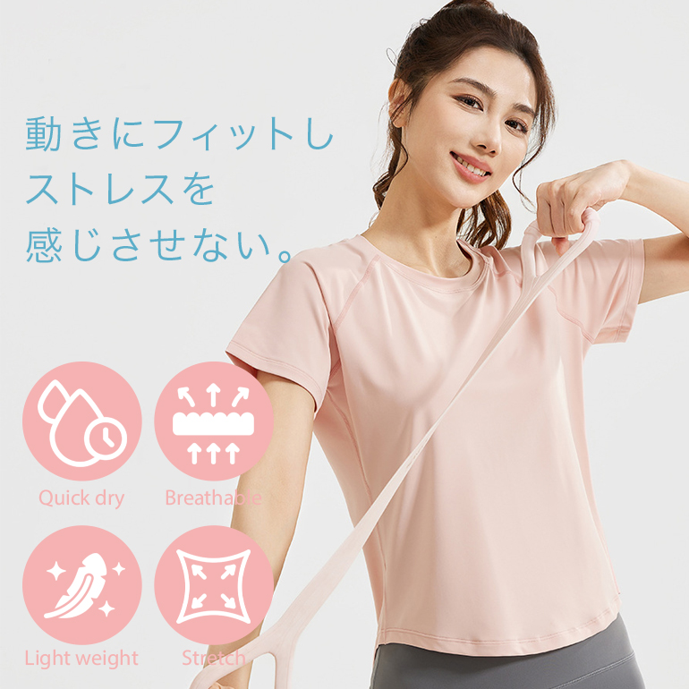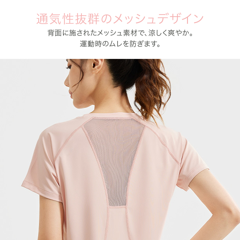 レディース フィットネスウェア トップス 半袖Tシャツ メッシュ スポーツTシャツ 吸汗速乾 通気性 ゆったり 伸縮性 ランニング ヨガ ピラティス ジム