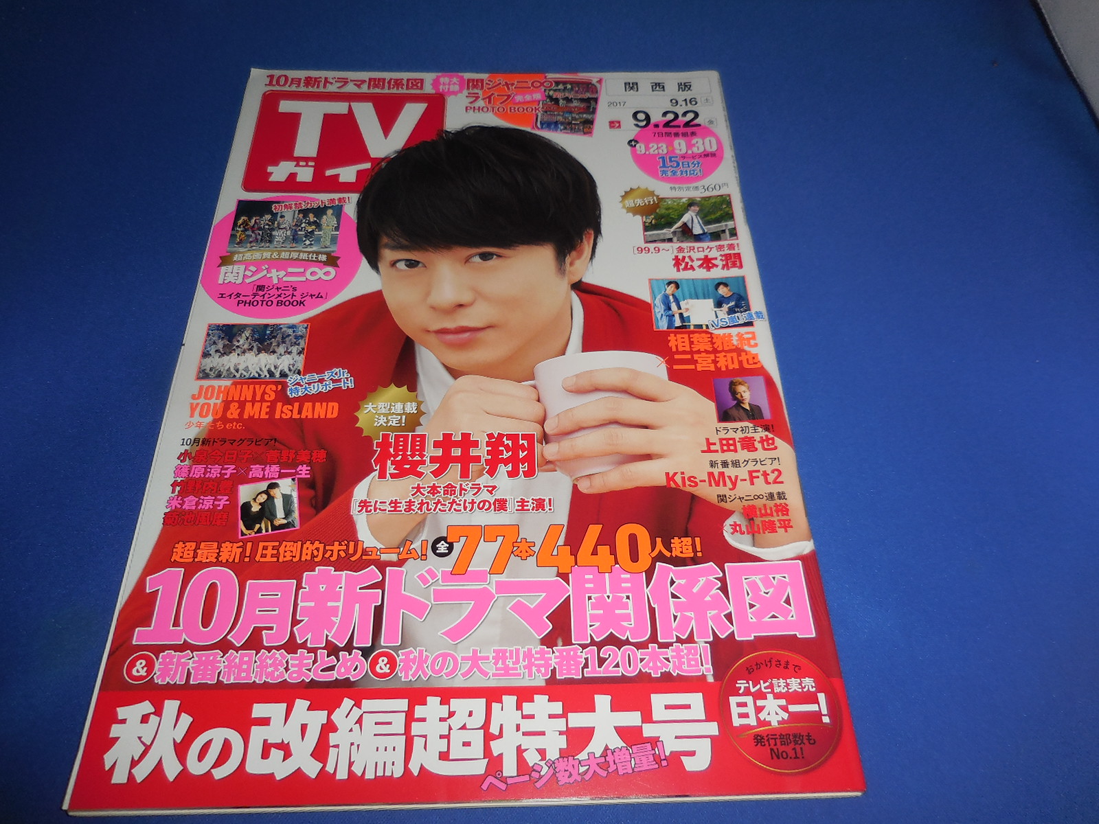 TVガイド 2017/9/22 櫻井翔/松本潤/関ジャニ∞ フォトブック/上田竜也/小泉今日子×菅野美穂/菊池風磨
