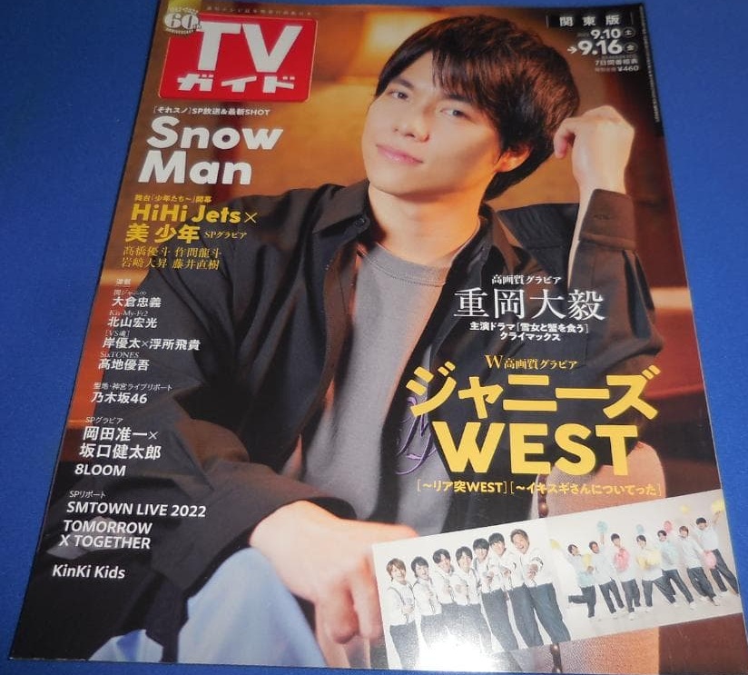 TVガイド 2022/9/16 重岡大毅/ジャニーズWEST/Snow Man/HiHi Jets × 美 少年/岡田准一×坂口健太郎