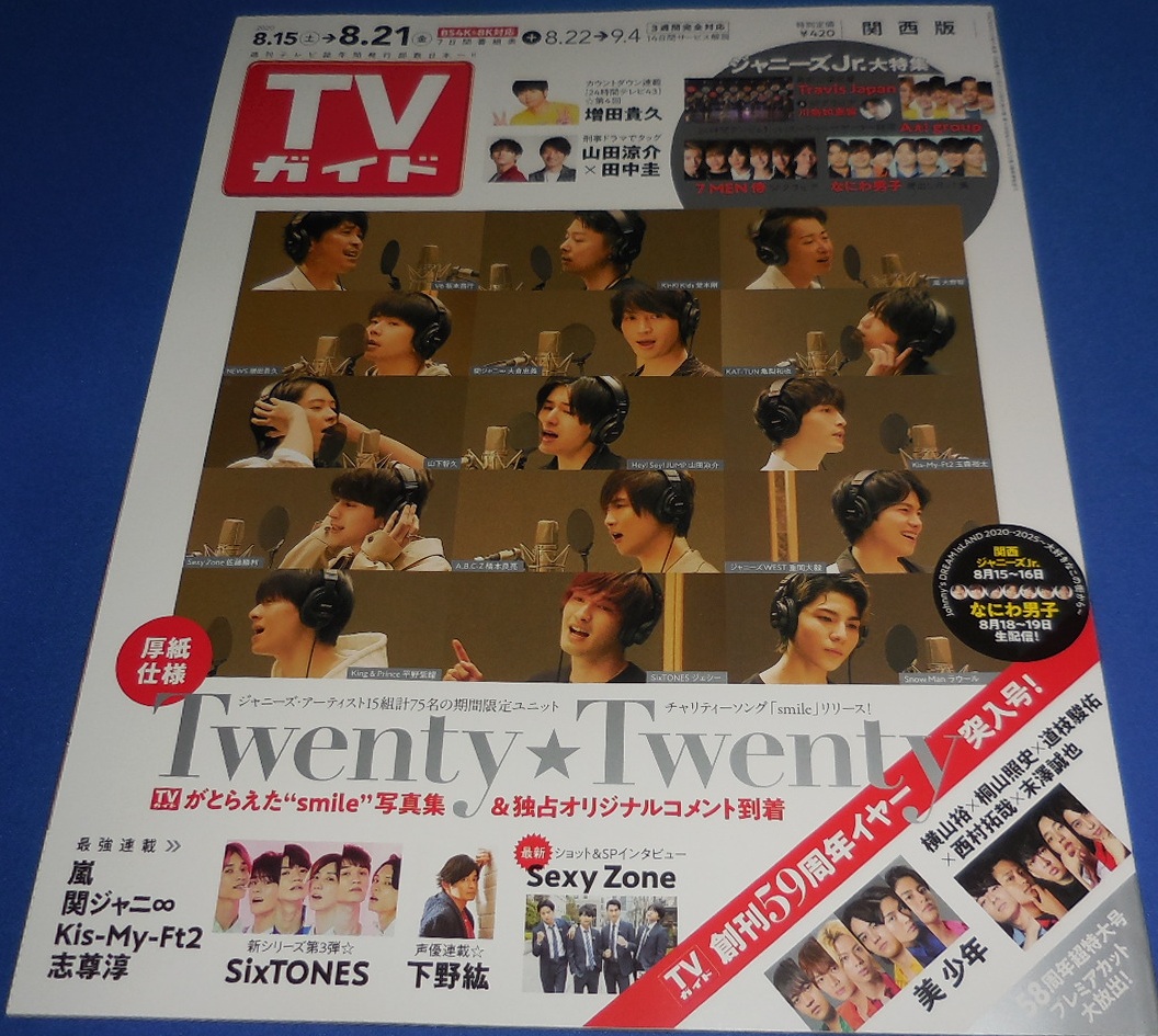 TVガイド 2020/8/21 Twenty Twenty/美 少年/横山裕 桐山照史 道枝駿佑 西村拓哉 末澤誠也/なにわ男子/Travis Japan/Sexy Zone/7 MEN 侍