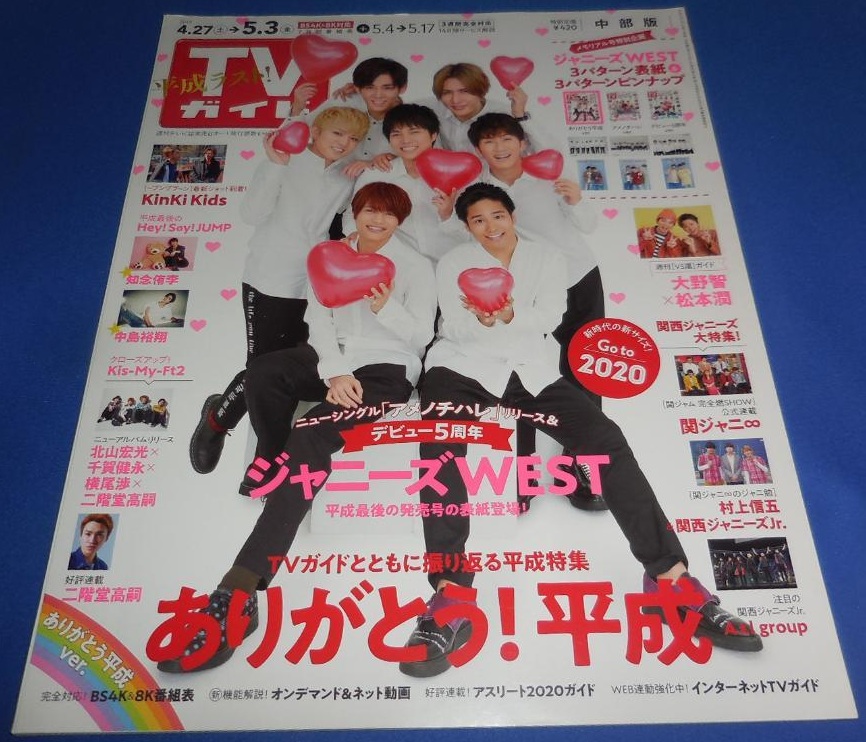 TVガイド 2019/5/3 ジャニーズWEST 3パターン表紙 ありがとう平成ver./知念侑李/中島裕翔/嵐連載 大野智×松本潤/北山宏光×千賀健永×横尾渉×二階堂高嗣