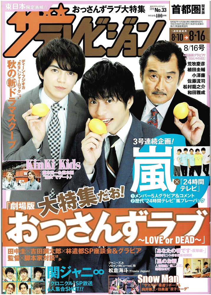ザテレビジョン 2019/No.33 田中圭×林遣都×吉田鋼太郎「劇場版 おっさんずラブ」/嵐/松倉海斗(Travis Japan) ソロインタビュー/関ジャニ∞