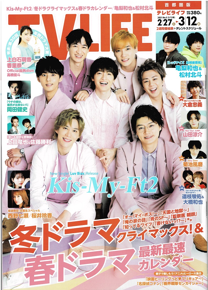 TVLIFE 2021/3/12 Kis-My-Ft2/上田竜也×佐藤勝利/亀梨和也×松村北斗/ヘイセイジャンプ連載 山田涼介/西野七瀬