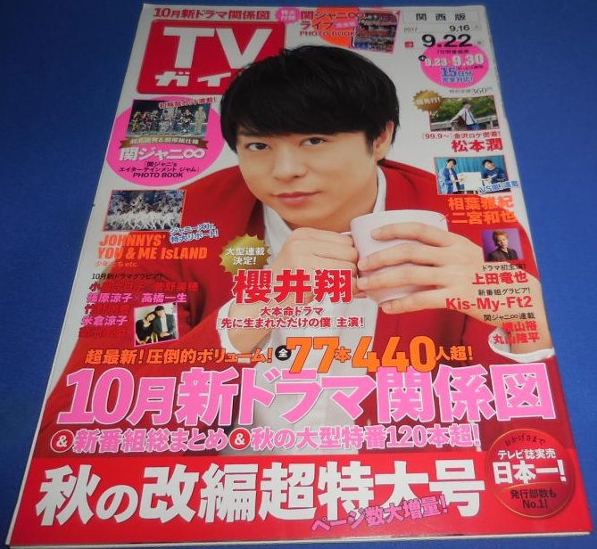 TVガイド 2017/9/22 櫻井翔/松本潤/関ジャニ∞ フォトブック/上田竜也/小泉今日子×菅野美穂/菊池風磨