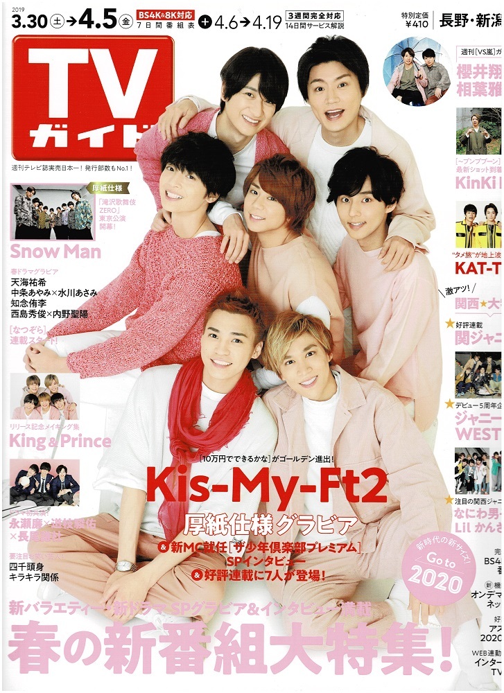 TVガイド 2019/4/5 Kis-My-Ft2/Snow Man/嵐/King & Prince/永瀬廉×道枝駿佑×長尾謙杜/なにわ男子/Lil かんさい