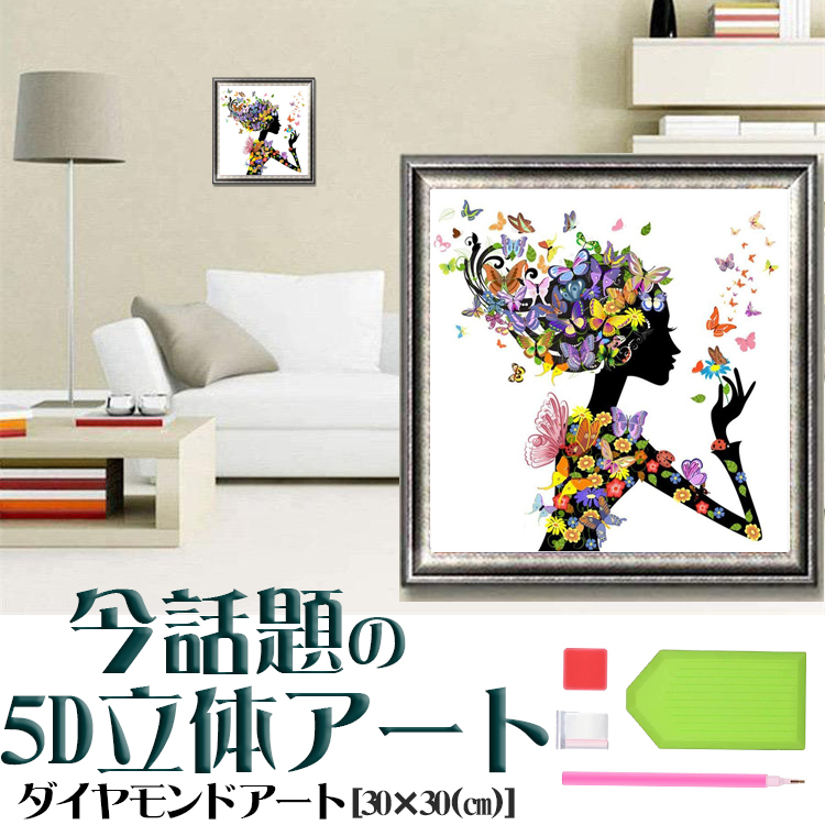 5D ダイヤモンドアート 蝶の女 蝶の群れ 蝶々全面貼り付け ビーズ絵画 セット 初心者 簡単 DIY 家庭刺繍装飾品 キット ツール 手作り 図案 送料無料
