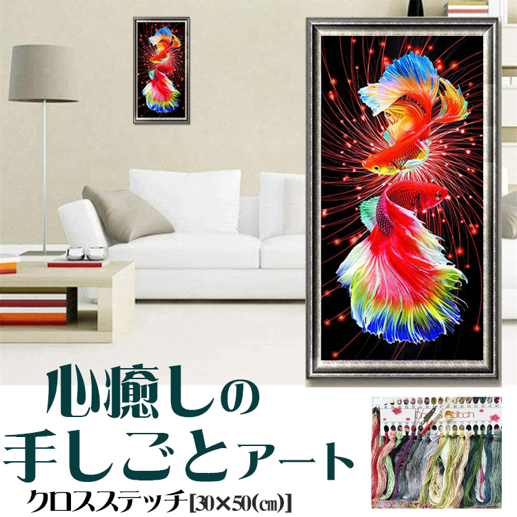 クロスステッチ 暗黒に輝く金魚の群れ 魚のパターンアート 刺繍キット 手芸キット 初心者 簡単 DIY 装飾 手作り 図案印刷 インテリア アート 美しい 送料無料