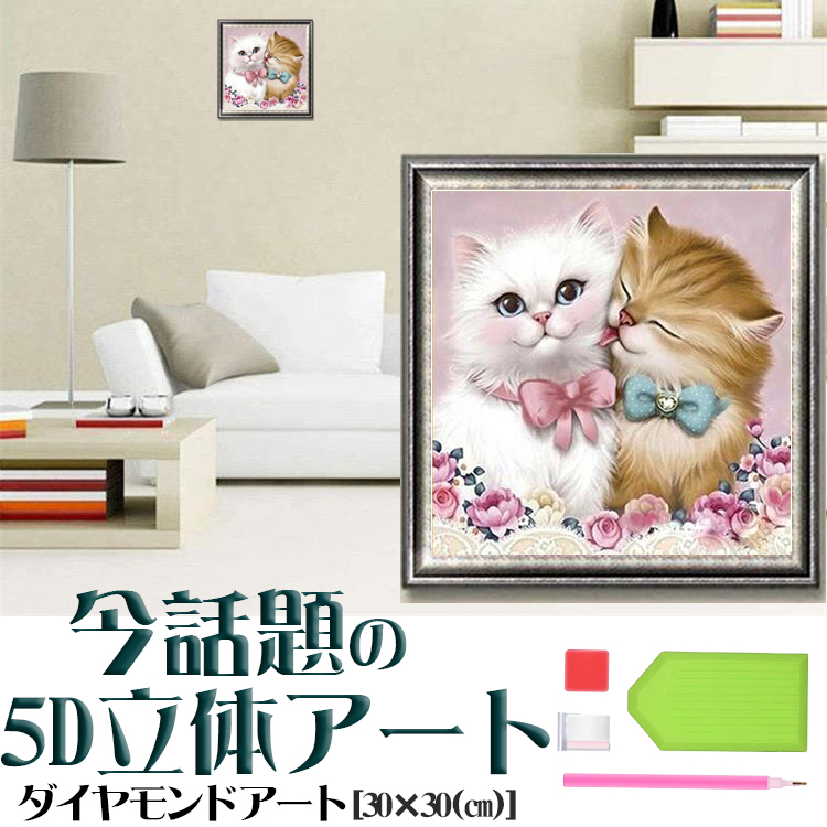 5D ダイヤモンドアート セット 猫 ラブ ネコ 毛繕い ビーズ絵画 初心者 簡単 DIY 人気 キット ツール 手作り 図案 現代アート 人気家庭飾り 送料無料