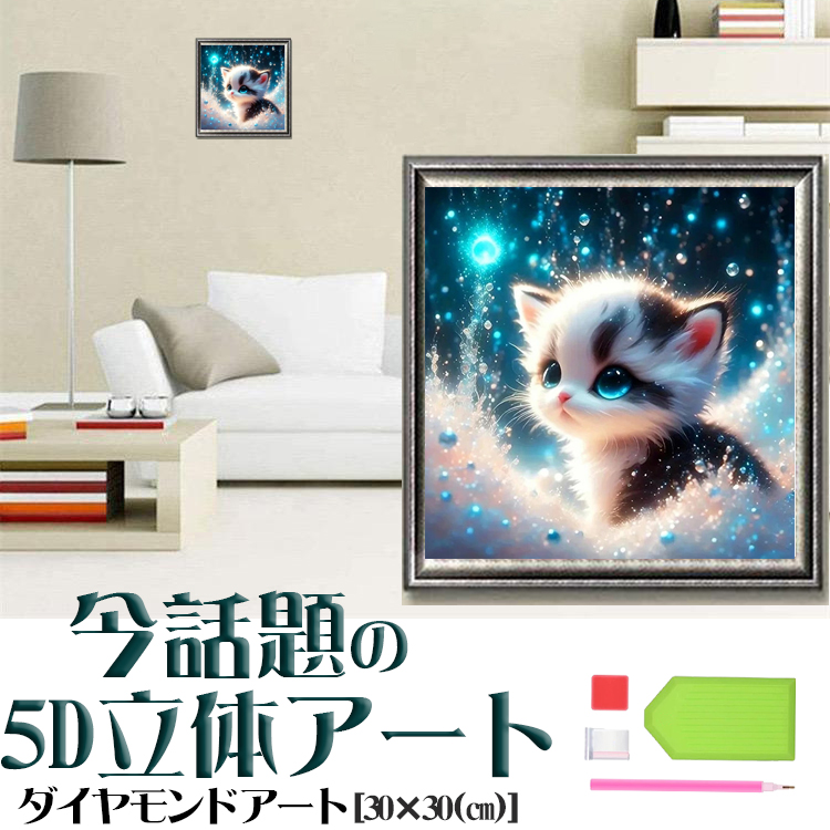ダイヤモンドアート 5D 萌え猫 可愛い ビーズ絵画 人気 やり方簡単 DIY 手作り 大人 子供 部屋 喫茶 初心者 現代壁アート インテリア ギフト 贈り物 送料無料