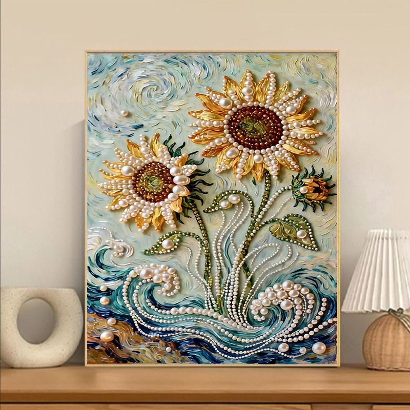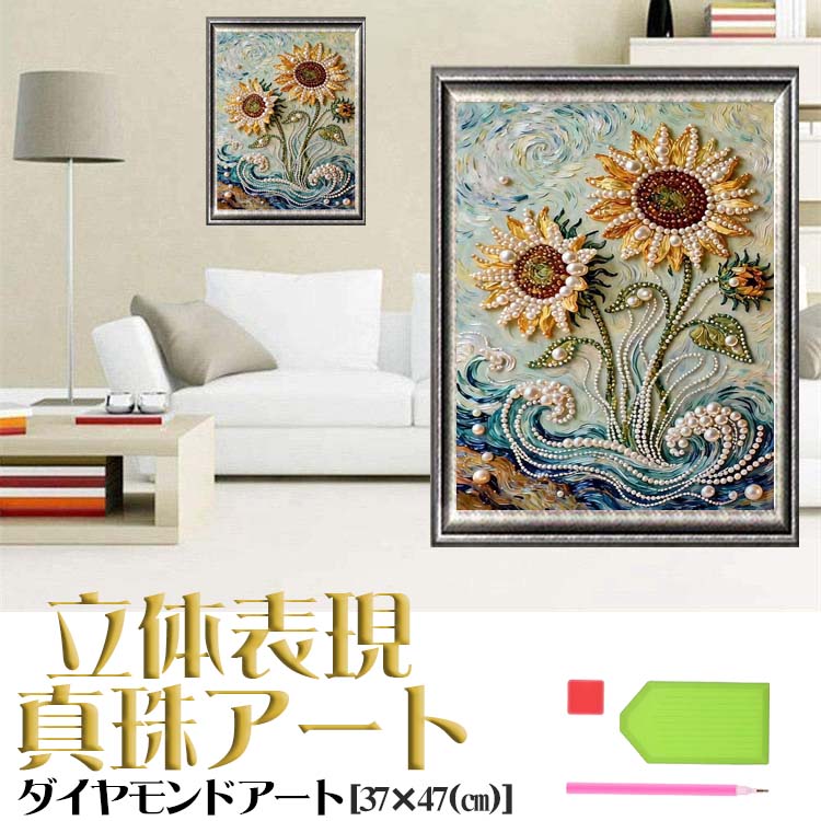 【すぐに始められる完備ツールキット】必要な道具がすべて揃っており、届いたその日から制作可能。ペン先に接着剤をつけ、キャンバスの記号にビーズを貼るだけで、初心者でも簡単に美しいアートが完成します。年齢・性別問わず楽しめます。