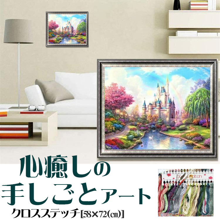 クロスステッチ 刺繍キット お城 虹 異世界 モダンアート 刺繍 やり方簡単 綺麗 おしゃれ DIY 手芸 ホームデコレーション 芸術アート