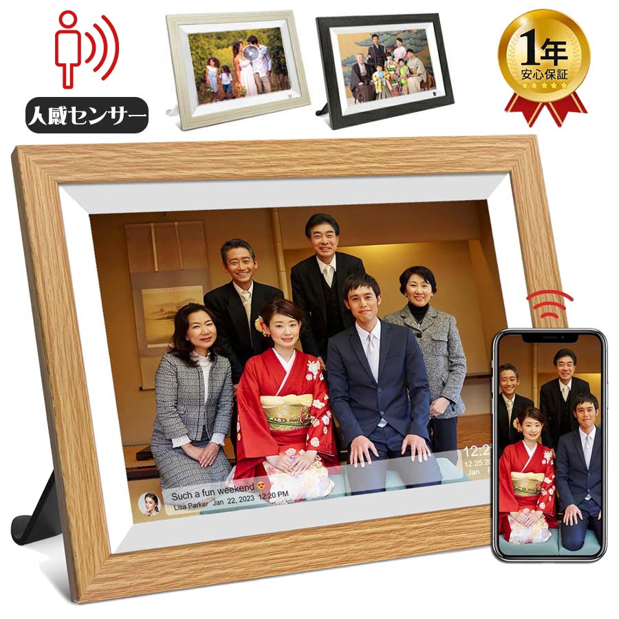 | 広視野角ディスプレイ:デジタル写真フレームには、解像度1280*800、視野角178°のIPS液晶パネルである10.1インチディスプレイが付属しており、どの角度からでもディスプレイをはっきりと見ることができます。 | | 100%原木 木製フレームを外せばホワイトフレームに変わります! | | 16:10の画面比率、タッチスクリーンを機能で、簡単楽々で各種の設定をし、画像および動画などを見る事ができる。スマートフォン及びメールなどで。お年寄り、学生、新婚夫婦へのプレゼントとしてベストな選択。 ※当店でラッピング対応はしておりませんが、該当商品のパッケージはきれいにしており、そのままでもプレゼント用としてできるように、デザインをさせて頂いております。 |