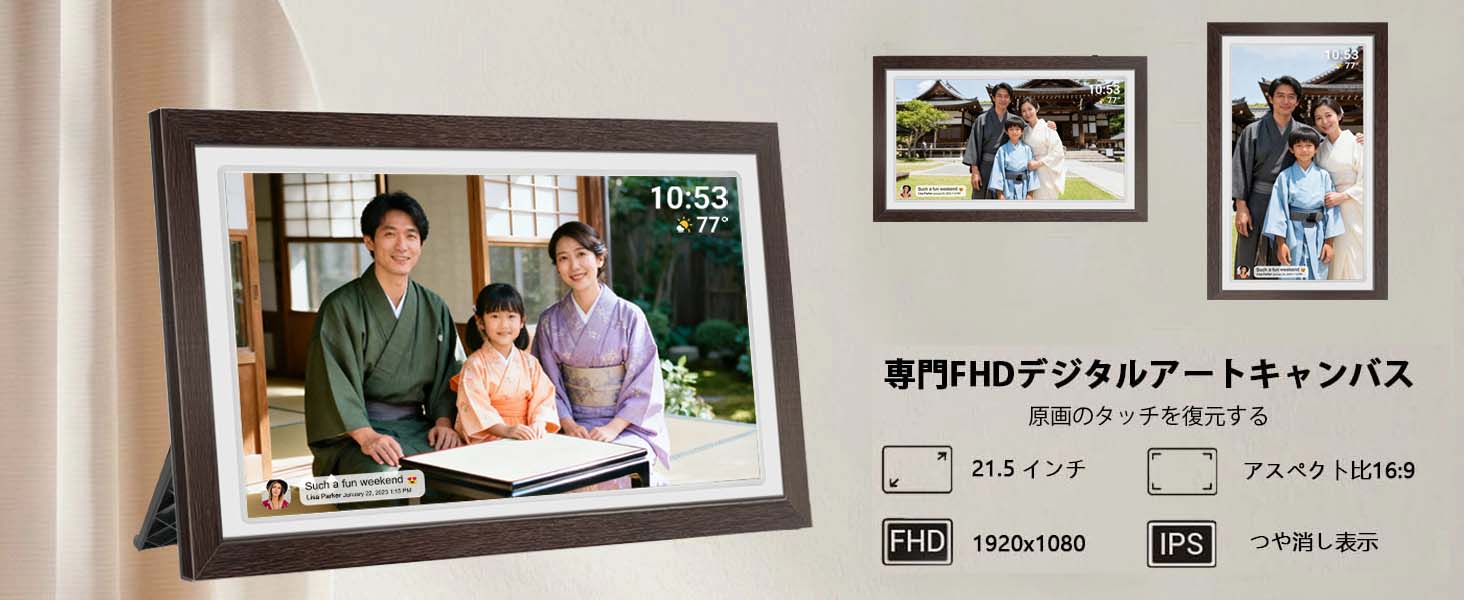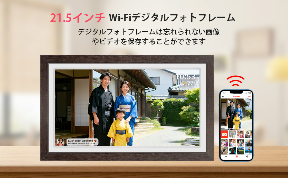 【スマートホームアート、温かい記憶の再現】21.5インチ高解像度WiFiデジタルフォトフレームで、家庭共有の新しい体験を創造。