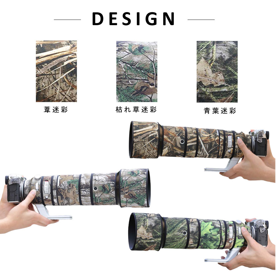ニコン(Nikon)Z 600mm F4 TC VR S USM 望遠レンズ専用にカスタマイズされた迷彩レンズカバー。高品質のポリエステルとネオプレン複合素材を採用し、ファッション性と機能性を完璧に融合させます。あなたの撮影機材に対して、全方位の防水、防塵、防震保護を提供し、アウトドア探検、野生動物撮影、スポーツイベント撮影に最適な相棒です。