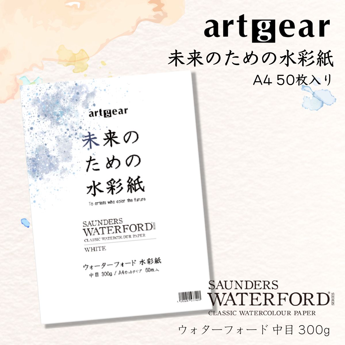 artgear 未来のための水彩紙 A4 50枚入り (ウォーターフォード 中目 300g) 高級紙 カット紙 たくさん使える 満足パック 大容量
