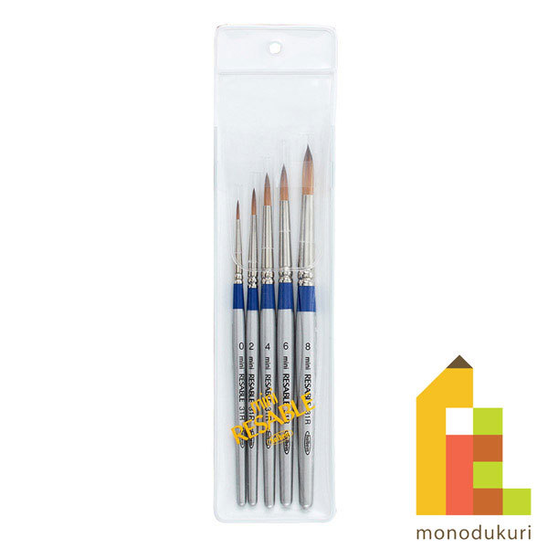 水彩用リセーブルの柄を短くしてコンパクトにした筆です。携帯にも便利な5本セット