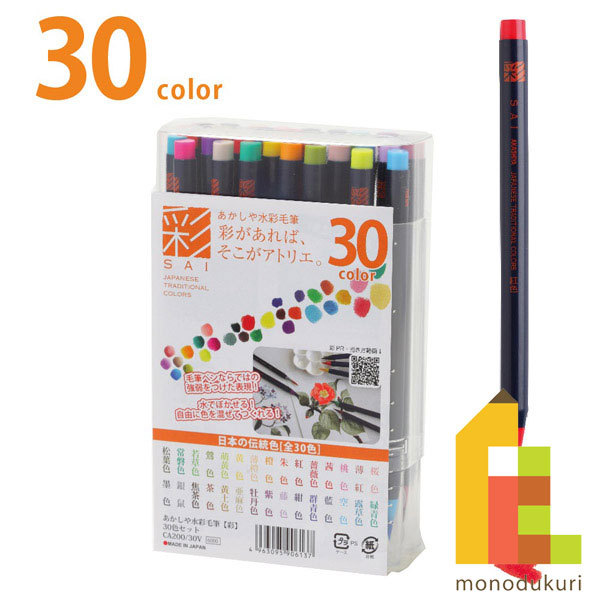 あかしや 水彩毛筆 彩 30色セット CA200 30V