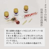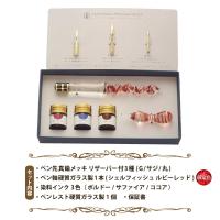 1本1本職人によって丁寧に作り上げられた手作りガラスペン軸とすぐに書ける染料インク3色入。