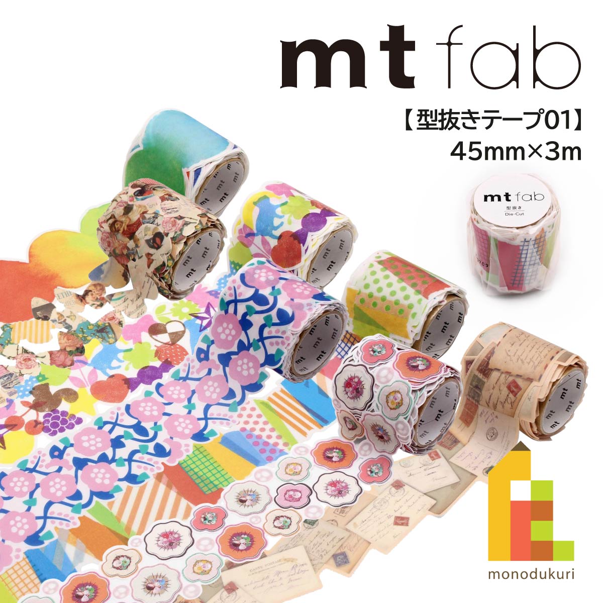カモ井加工紙 マスキングテープ 【mt fab/型抜きテープ01】 45mm×3m (MTKT1P05〜MTKT1P11)