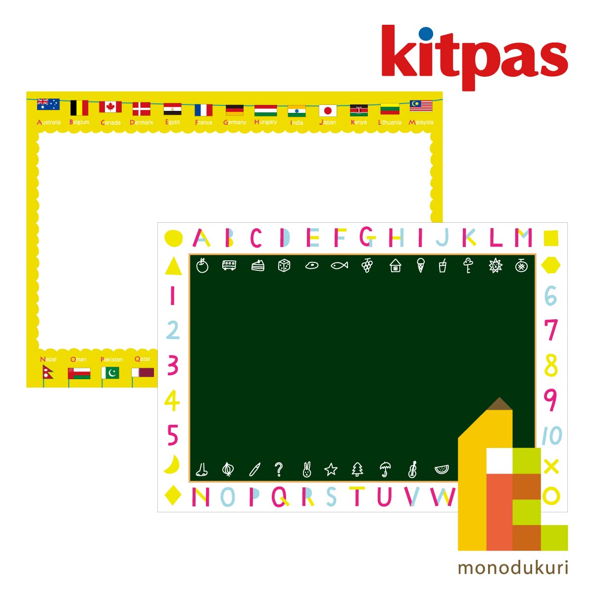 日本理化学 キットパスフォーバスシート kitpas for bath sheet 【国旗柄・白 (OFB-W)/黒板柄・緑(OFB-G)】