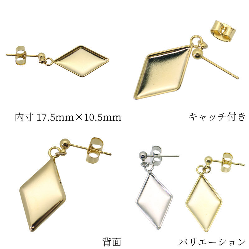 | ひし型カラワク(空枠)ピアス 17.5mm×10.5mm #4122 ※銅板なし |