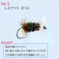 エルクヘアーカディス、パラシュート、ロイヤルウルフなど、長年支持され続けてきた定番フライを中心に構成。