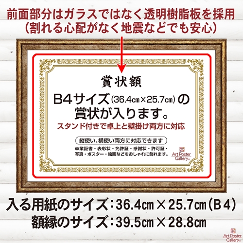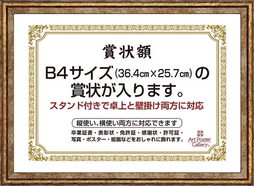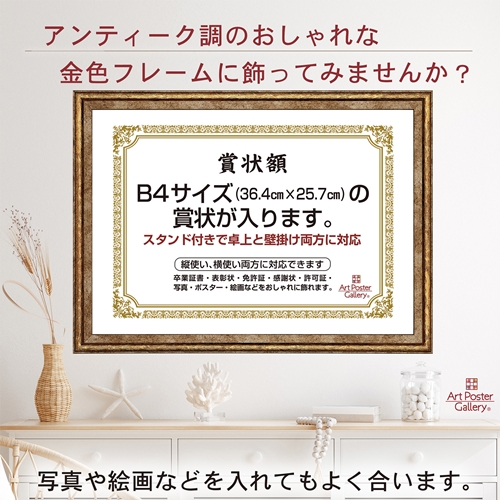 賞状 額縁 B4 サイズ 金色 ゴールド 横 縦 フォトフレーム 壁掛け 写真立て 写真入れ ポスターフレーム