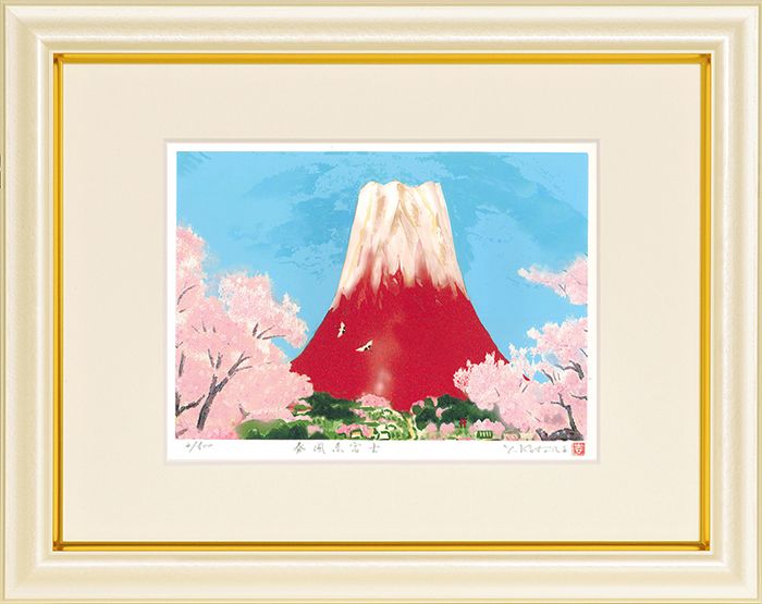 絵画 吉岡浩太郎 春風赤富士 版画 インテリア