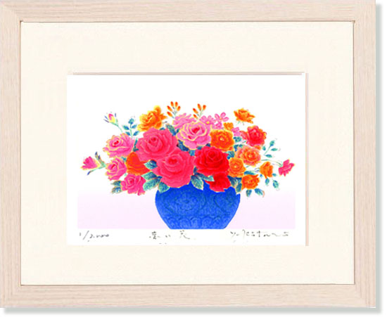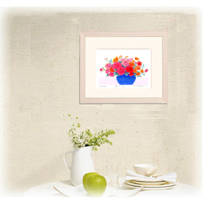 吉岡浩太郎 インテリアアート界の第一線で活躍し、シルクスクリーン版画の第一人者として不動の地位を確立した画家です。 アートワーク : 赤い花「赤い花」は、鮮やかな赤やピンクの花々が華やかに咲き誇る作品です。