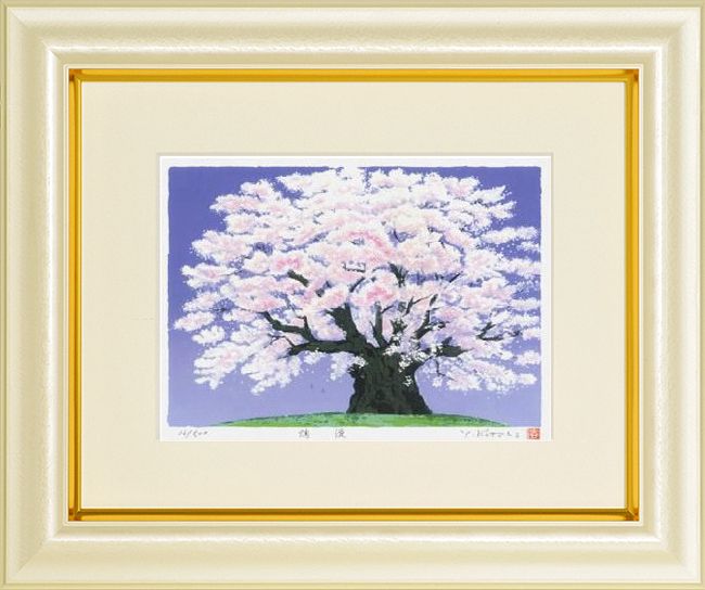 絵画 吉岡浩太郎 尾根の淡墨桜 (うすずみざくら)( 岐阜県 ) 春 爛漫 インテリア