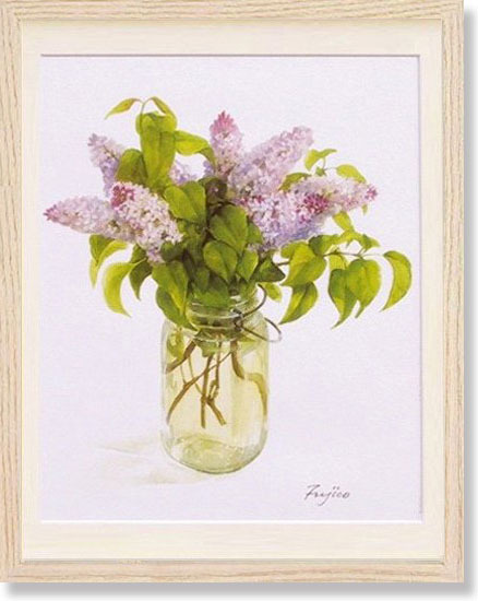 絵画 花 橋本不二子 ライラックの香り 植物画 インテリア 花瓶とフラワー