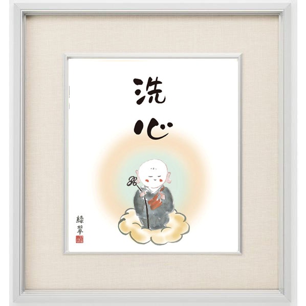 静かに目を閉じる小僧の姿を通して、心を清める大切さを表現しています。