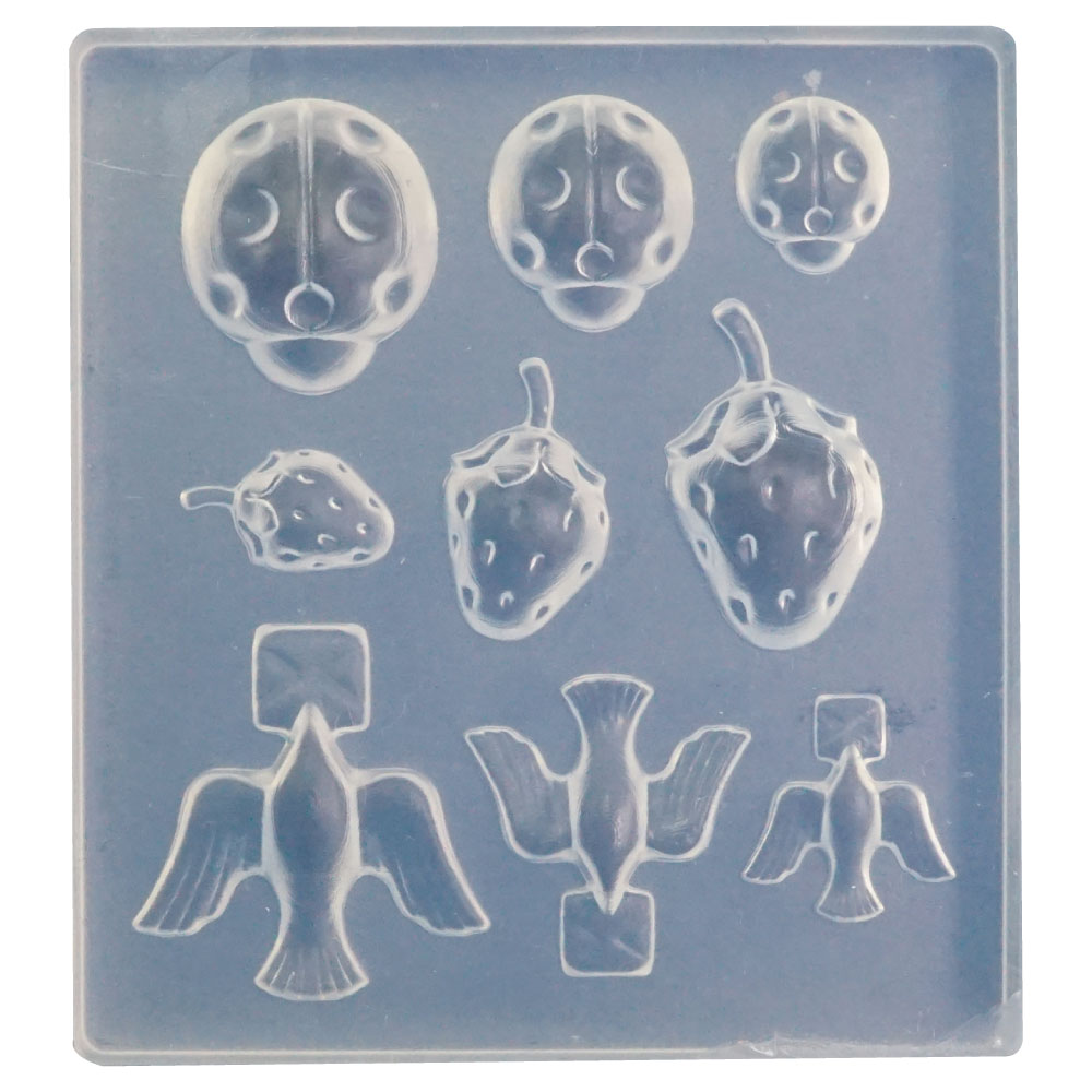 シリコンモールドシリコンモールド ラッキーチャーム2(てんとう虫・苺・ピジョン)/ サイズ 58×53mm / レジン
