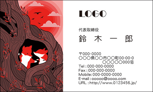 カラーデザイン名刺 ショップカード 印刷 作成【100枚】ロゴ入れ可 きつね animal015