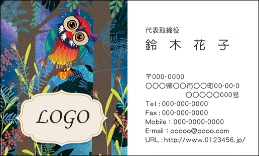 カラーデザイン名刺 ショップカード 印刷 作成 100枚 ロゴ入れ可 ふくろう animal017